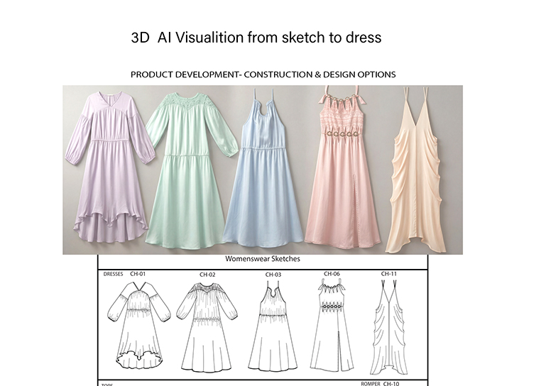 I help the creative team to turn their vision into product. I sketch, source fabrics and trims that the product requires. Also,I work with print mills and embellishments to develop new styles with correct finishings. I work with outsource vendors to guide them how to achieve correct styling and fit.